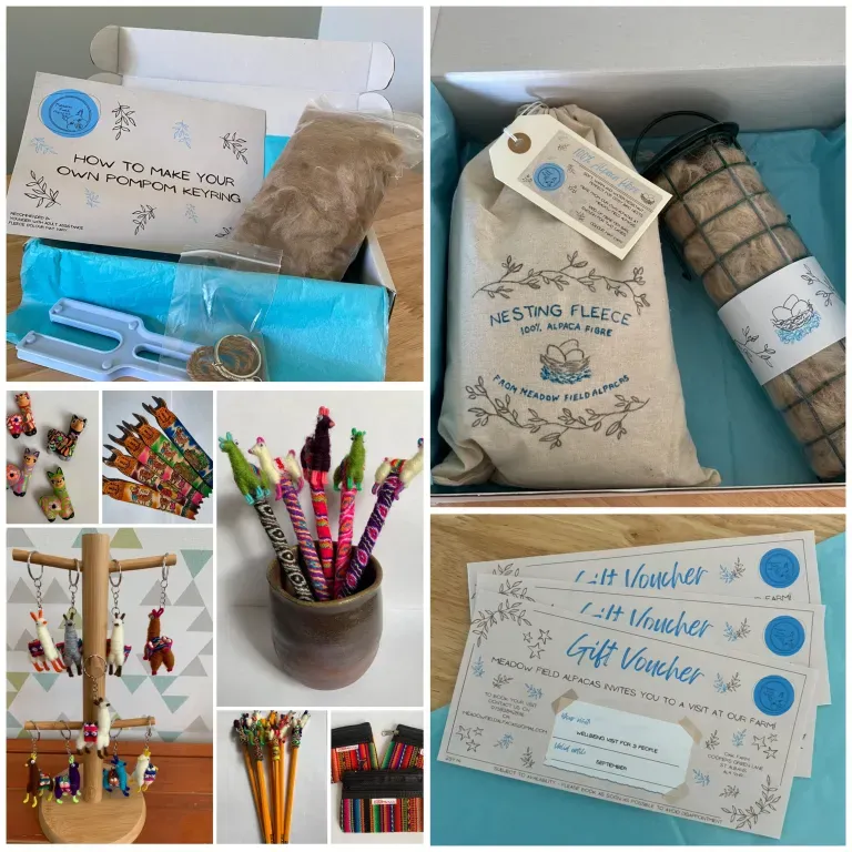 Homemade products made with fleece from our alpacas, along with other exciting bits, available on our Etsy shop.
